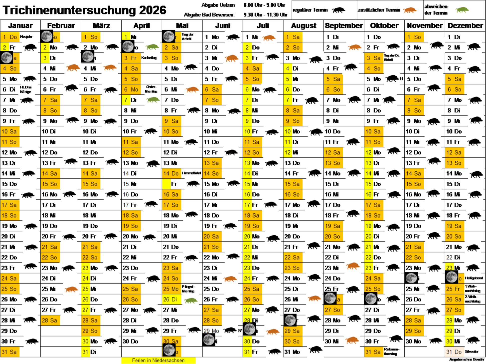 Der Kalender zur Trichinenprobenabgabe 2026 finden Sie unter nachfolgendem Link zum Download: